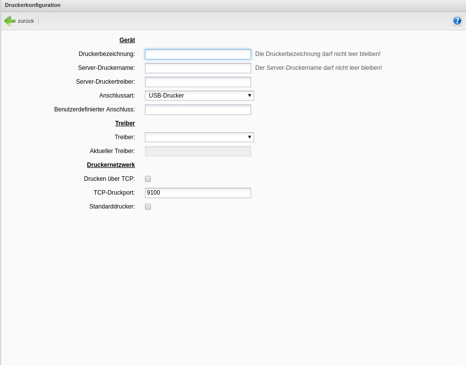 Abbildung 2.9. Setup Wizard – Druckereinstellungen - Neuer lokaler Drucker
