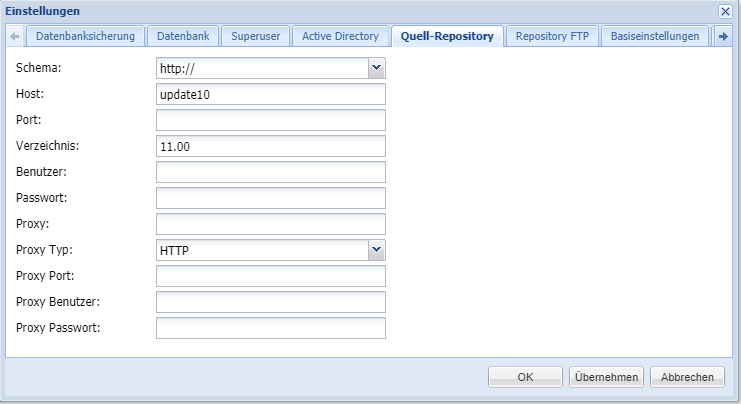 Möchten Sie die TCMS-Repository-Funkionalität nicht benutzen, so lassen Sie die Felder unausgefüllt.