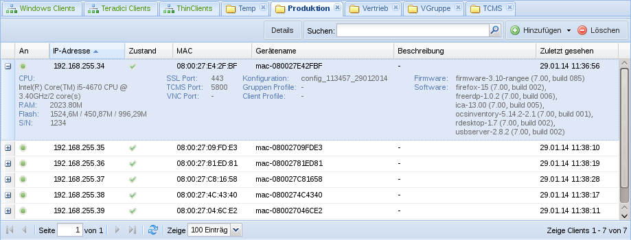Durch das Klicken auf das Plusadd Zeichen werden weiterführende Informationen zu dem Client angezeigt.