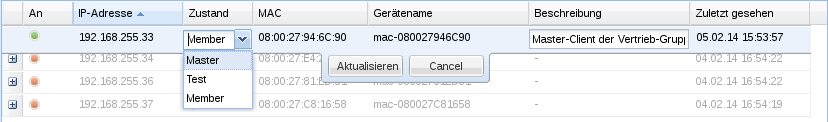 Die Rolle Master bedeutet, dass der Client bei jeder Anmeldung am TCMS die Gruppen-Konfiguration aktualisiert. Diese Rolle wird durch ein (M) symbolisiert.