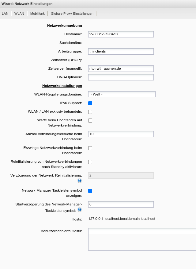 Der Hostname wird von Unix/Linux-Systemen als Hostname und in ICA- oder RDP-Sitzungen als Client-Name verwendet. Der Standard-Hostname enthält den Namen mac- und die jeweilige MAC-Adresse des Gerätes. Rangee Linux unterstützt NTP-Timeserver. Einmal konfiguriert bezieht der Rangee Thin Client aktuelle Informationen zu Datum und Uhrzeit von dem angegebenem Server.