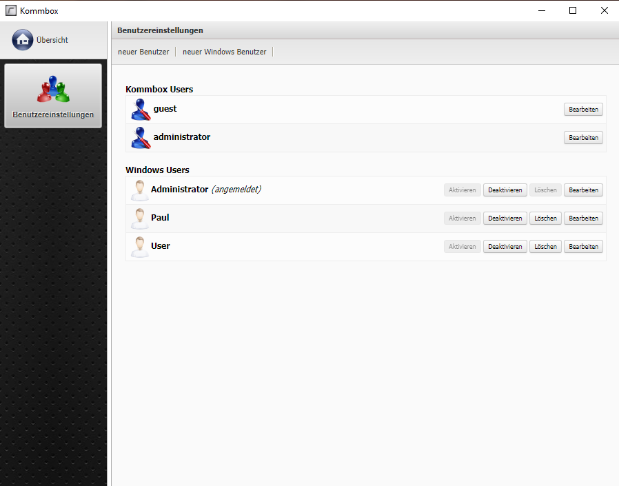 Desweiteren ist es hier möglich, weitere Windows Benutzerkonten einzurichten.