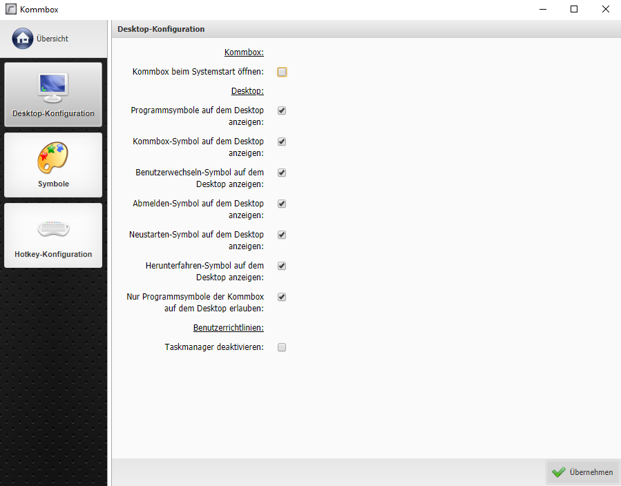 In der Desktop-Konfiguration finden Sie verschiedene Konfigurationsmöglichkeiten.