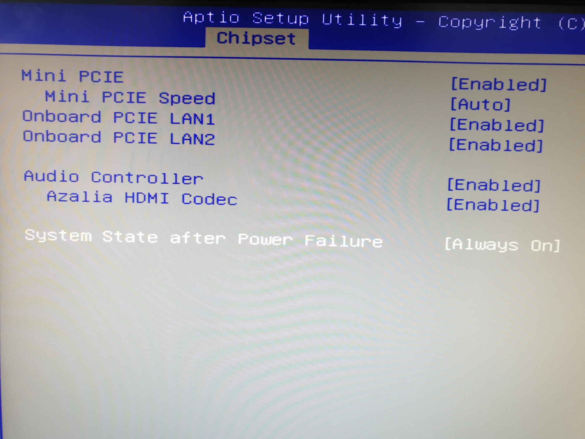 - Setsen Sie die Option "System Starte after Power Failure" auf: