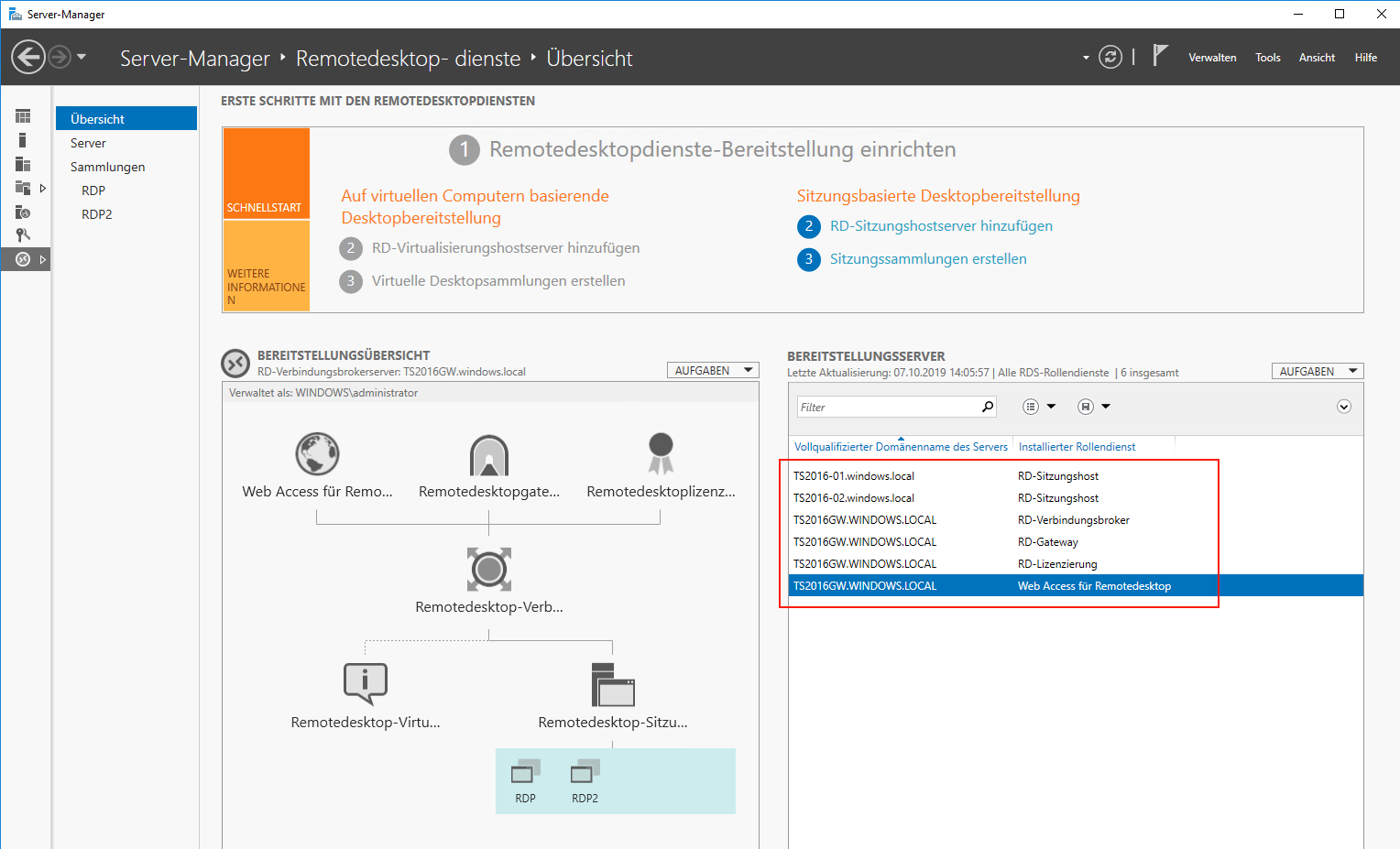 SERVER-MANAGER  ->  REMOTDESKTOP-DIENSTE  →  ÜBERSICHT  → Fenster bereitstellungsserver .