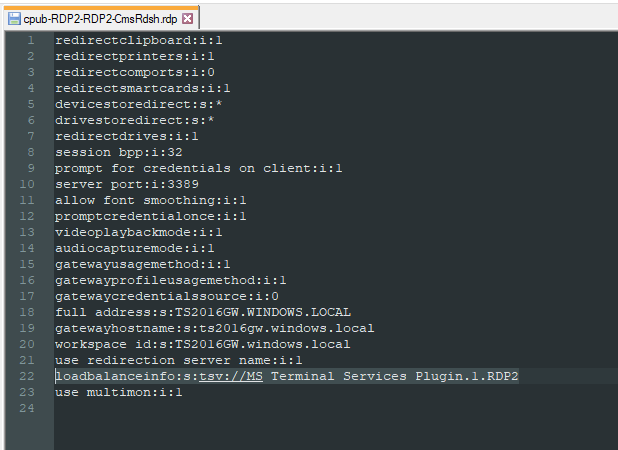 4. Öffnen Sie die Datei anschließend mit einem beliebigen Texteditor und suchen Sie nach der Zeile, beginnend mit: "loadbalanceinfo:s:"
