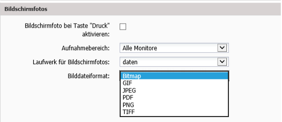 Zu guter Letzt können Sie das Bilddateiformat für die Bildschirmfotodatei bestimmen. Die möglichen Optionen beinhalten die meisten gängigen Bilddateiformate: