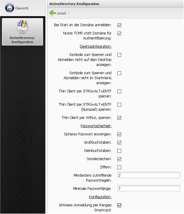 Die Anmeldung an einer Active Directory Struktur ist direkt am Thin Client möglich.