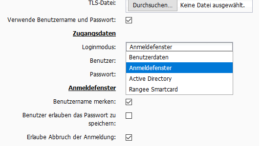 Im folgenden Beispiel verwenden wir den Loginmodus Anmeldefenster.