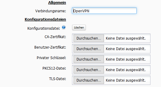 Wählen Sie nun einen Verbindungsnamen und laden Sie eine Konfigurationsdatei hoch.