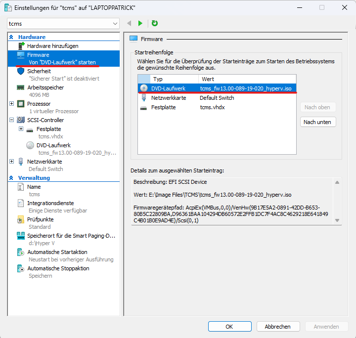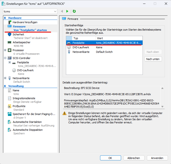 Bestätigen Sie den Vorgang mit einem Klick auf „Anwenden“ und starten Sie die virtuelle Maschine.