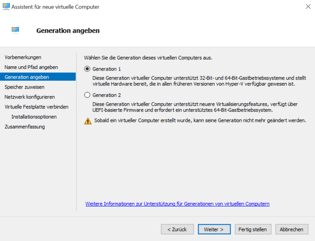 Schritt 1 – Erstellen der Virtuellen Maschine: