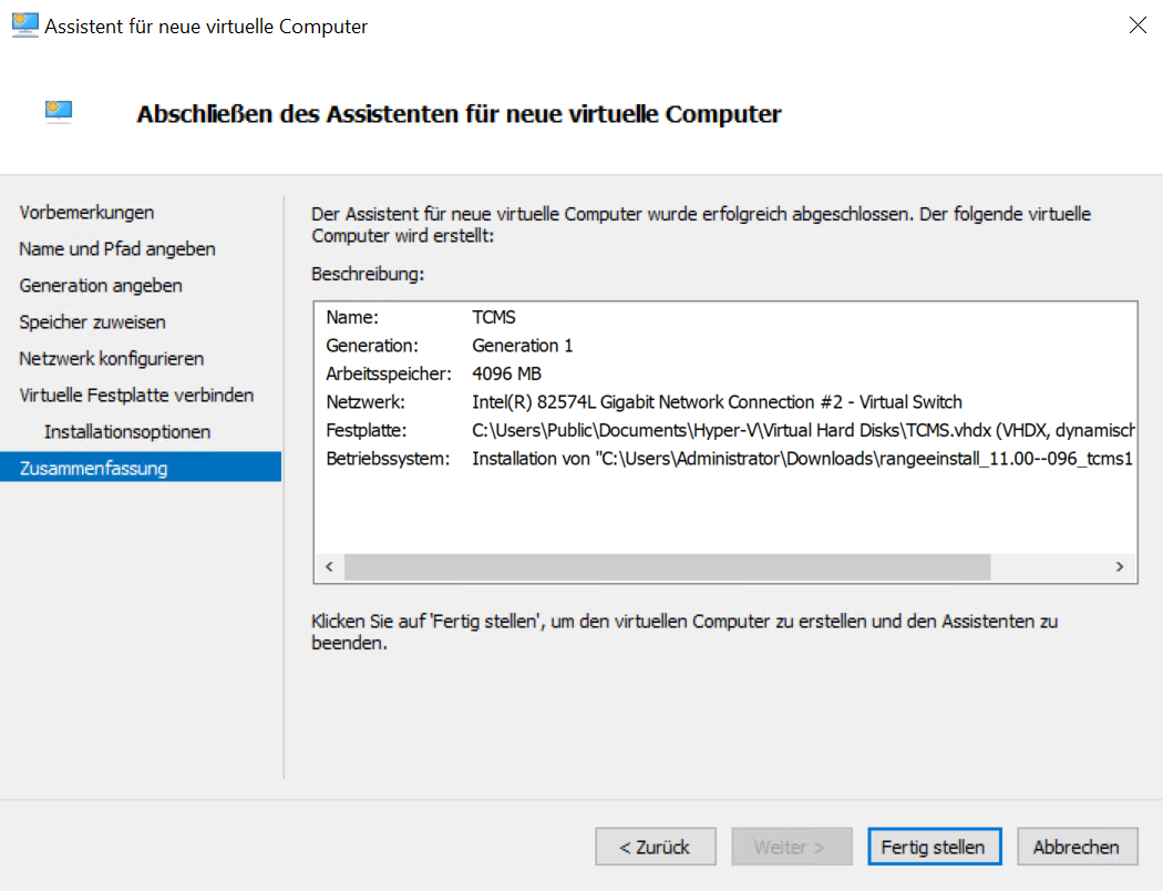 TCMS - Installation auf Hyper-V