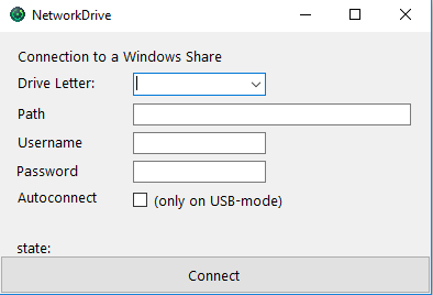 Für die Bereitstellung über ein Netzlaufwerk können Sie das Menü Networkdrive -> Connect Drive verwenden und dort die entsprechenden Daten eintragen: