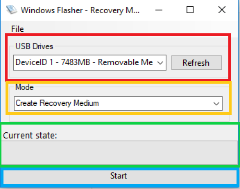 1. das Rangee „Windows Flasher - Recovery Media Creation Tool“