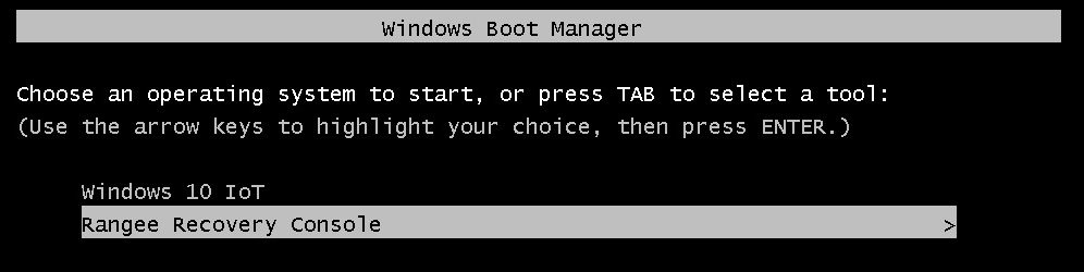 5. Warten Sie bis die Recovery Console geladen ist und fahren Sie mit dem Kapitel „Rangee Recovery Console“ fort.